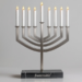 - Chandelier à neuf branches, dont une branche particulière est appelée shamash, en usage lors de la célébration de Hanouka. ↩︎